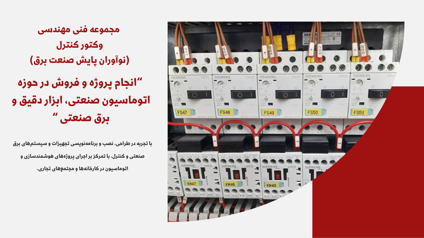 مجموعه فنی مهندسی وکتور کنترل (نوآوران پایش صنعت برق) از سال 1402، فعالیت خود را در زمینه فروش، آموزش و انجام پروژه در حوزه اتوماسیون صنعتی، ابزار دقیق و برق صنعتی آغاز نموده است. این مجموعه کلیه خدمات تجهیزات برند‌های مطرح بازار نظیر زیمنس، دلتا، اینوت، اشنایدر، ال اس، آلن بردلی و ... را انجام می‌دهد.